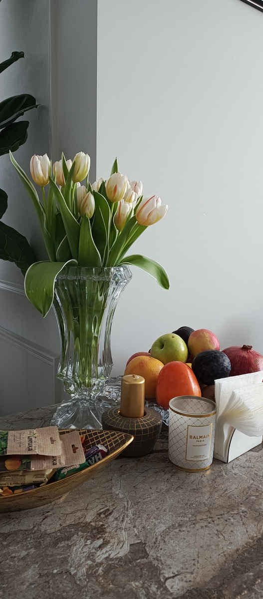 Сегодня холодильник ну не то что бы в ноль вышел, но существенно напрягся. По большому счёту да же с таким, можно жить ещё неделю в лёгкую, а с учётом, что всяких там крупомакарон полно, то и две. Но чего то надо, а лень великая, поэтому в пятак с пятаком, ну и рядом прошвырнусь... (ну на всякий пожарный два пятака)... А там короче тюльпаны и такие хорошие, и марта восьмое уже вот оно... И взял два раза по 15 штук... И чего то вот понеслась..., сливы крупные, хурма, яблочки, гранатики так ваще прелесть! Прям папик и лапочка дочка!) Помидорчики, Иран, тонкокожие, сочные, запах томата за километр! Опять же вот Швейцария, прям то же с запахом капитализма сырок... Ну есесьино клубничка, Саид дал попробовать - огнище! Надо брать! И фсё..., по мелочи ещё пивка, чиабатку, докторской.., чирика нету, а холодильник всё равно пустой... Нельзя мене одного в магазин отпускать))))