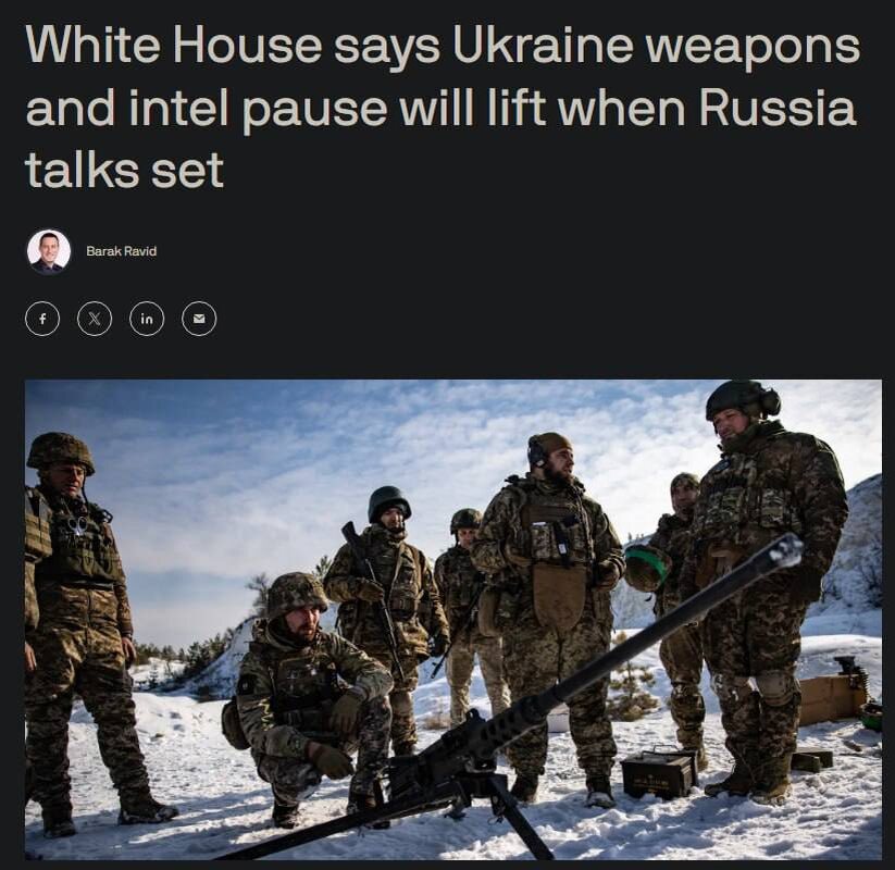 ❗️Пока не будет определена точная дата мирных переговоров Украины и РФ, США не будут поставлять оружие и делиться разведданными с Киевом.