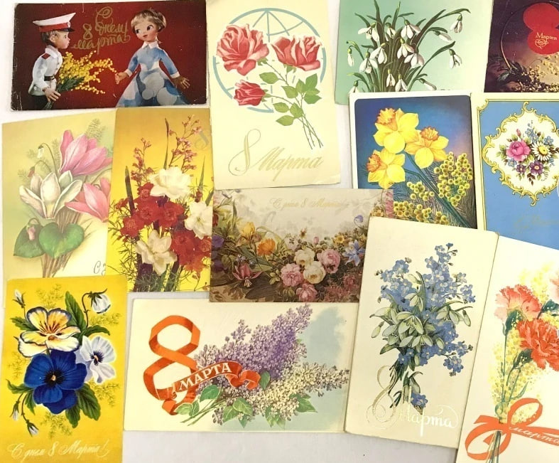 И на память приходят сразу тюльпаны, мимозы, нарциссы, подснежники. Именно их изображали на советских открытках и плакатах. Именно их начинают продавать в цветочных магазинах, лавках, в метро, на рынках во всех городах России буквально сразу после 23 февраля...