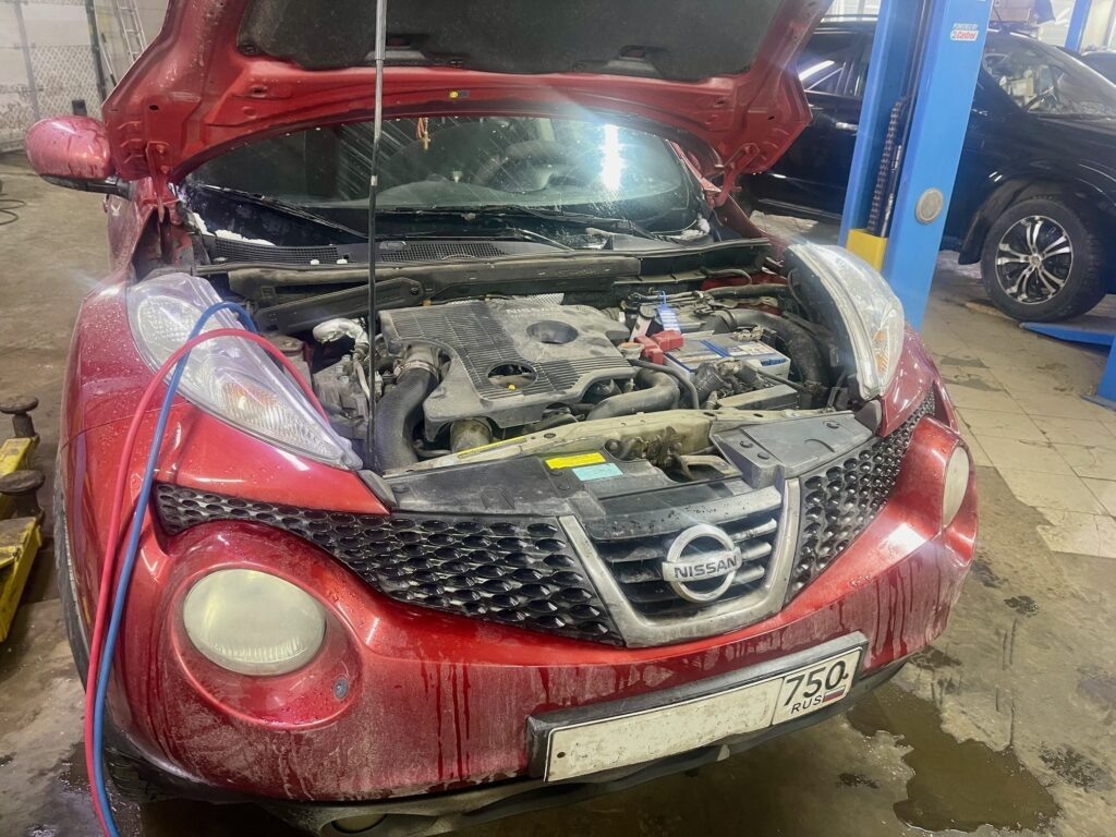 К нам обратился владелец Nissan Juke 2011 года выпуска с пробегом 90000км. При движении на небольшой скорости произошел удар и двигатель заглох.