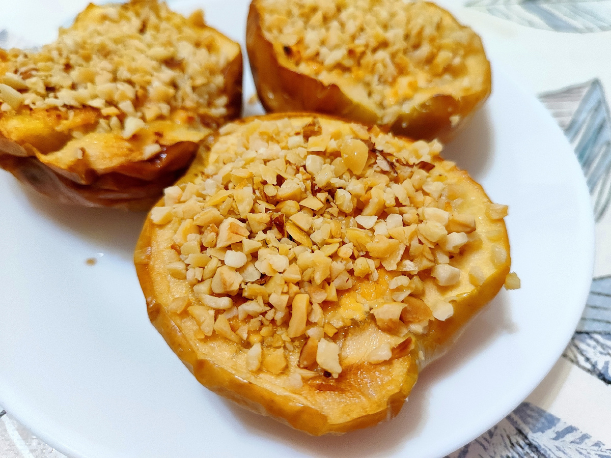 Рада приветствовать Вас на моём канале! Делюсь рецептом полезного десерта. Можно взять и другие фрукты, такие как персик, грушу и т.д. По желанию перед запеканием, яблоко с творогом можно посыпать сахаром, если любите десерт послаще. 1) Яблоки разрезать на половинки, удалить сердцевину с помощью столовой ложки. 2) Творог перемешать с мёдом (или с сахаром) и разложить по половинкам яблок. 3) Яблоки с творогом уложить в форму, застеленную фольгой. Влить 70 мл воды. 4) Запекать при 180 градусах 30 минут, выложить сверху на яблоки кусочки сливочного масла. 5) Продолжать запекать до полной готовности яблок (10-20 минут). Время варьируется в зависимости от жёсткости яблок. 6) Горстку любых орешков раздробить в кухонном измельчителе. 7) Украсить готовые яблоки с творогом орешками. Приятного аппетита! Яблоки - 2 шт. (крупные и желательно рыхлые) Творог - 100 гр. Мёд - 2 ст.л. (можно заменить сахаром по вкусу) Сахар - по желанию Вода - 70 мл. Спасибо за внимание! Подписывайтесь на мой ка
