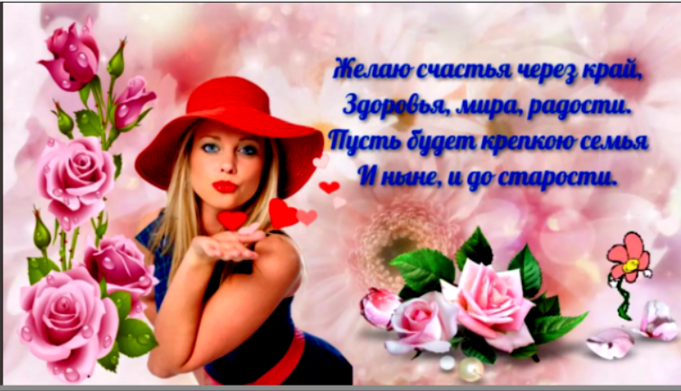 Хочу поздравить с наступающим праздником, Международным женским днем, и пожелать всего самого наилучшего: исполнения всех заветных мечтаний, достижения всех поставленных целей, домашнего тепла и семейного уюта. Пусть каждый день радует новыми позитивными эмоциями и приносит только счастье