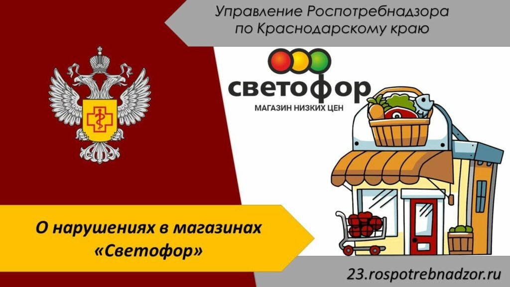 В двух магазинах сети «Светофор» в Краснодарском крае специалисты Роспотребнадзора зафиксировали нарушения санитарных норм. Суд приостановил их работу на семь дней, сообщили в пресс-службе управления Роспотребнадзора по Краснодарскому краю.