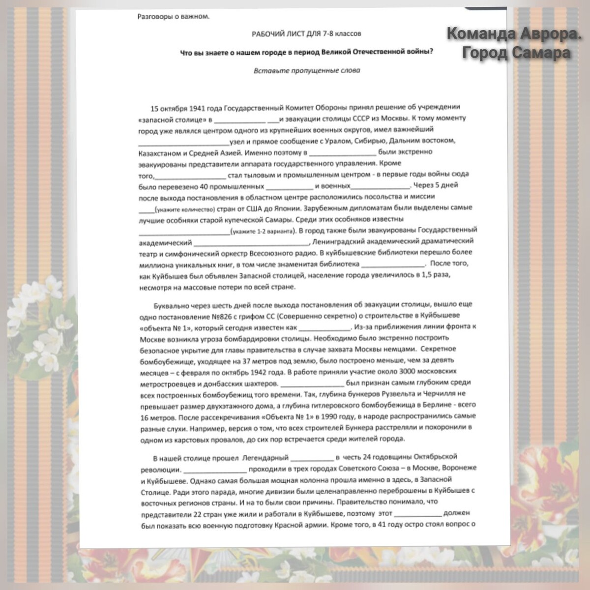 ✅Наша команда-добровольцев «Аврора» ни дня без дела не сидит и пока вы гадаете какую тему классного часа приготовил классный руководитель для вас, мы активно сами готовимся к уроку! ✅Мы разработали рабочий лист для занятия по курсу «Разговоры о важном» по теме «80-летие Победы», где представлены задания для учащихся 8-9 классов. #80ДобрыхДелКПобеде #ФорумКлассныхРуководителей #Сферум80Доб рыхДел