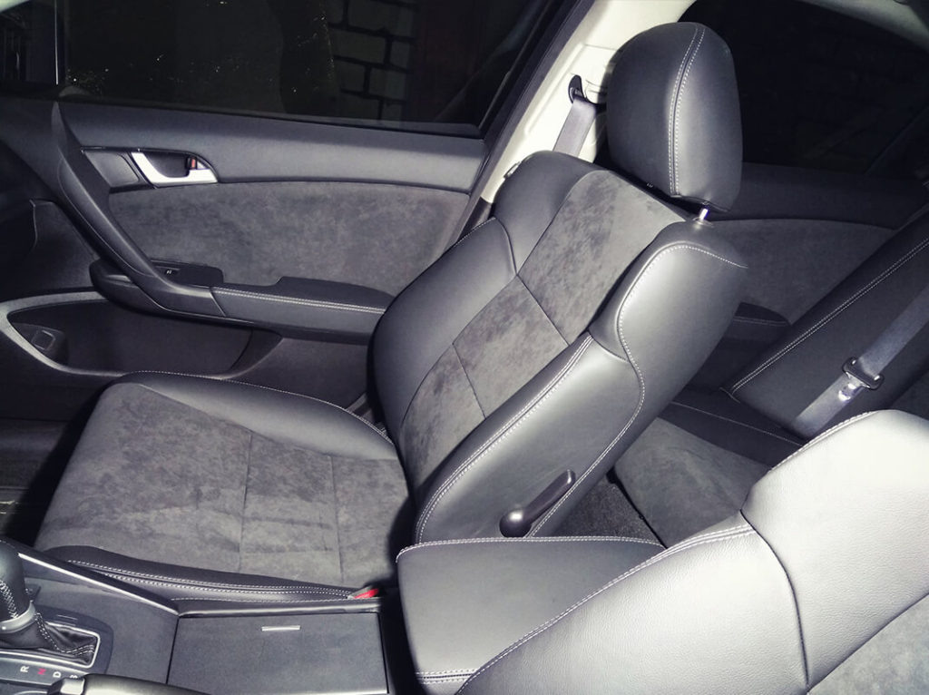 Перетяжка сидений – оригинальный и универсальный способ вернуть автомобилю презентабельный вид, скрыть механические повреждения и создать новый интерьер в салоне. Эта процедура помогает придать машине индивидуальности и сделать пребывание в ней комфортнее: как для водителя, так и для пассажиров. Конечно, стоимость перетяжки сидений всегда рассчитывается индивидуально, но каждый заказчик хочет знать ориентировочную цену. На что опираться при заказе и из чего складывается общая цена на перетяжку сидений – поговорим в этой статье! Материалы Конечная стоимость зависит от нескольких факторов. Прежде всего, это: Самые популярные материалы для перетяжки сидений – алькантара, экокожа, натуральная кожа и различные виды автомобильных тканей. У каждого из этих материалов есть свои преимущества, и все они имеют разный ценовой диапазон: самой дорогой является натуральная кожа, она имеет очень высокие эксплуатационные характеристики, не выгорает, хорошо переносит перепады температур и отличается изн