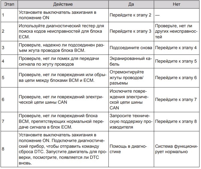 Условия появления кода неисправности: в блоке ECM истекло время ожидания сигнала от блока BCM.