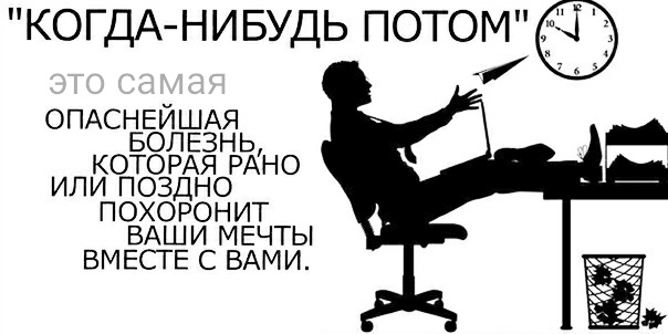 Часто люди что-то планируют и ожидают наступления каких-то "хороших" условий, которые будут подходящими для этого; вполне вероятно, что вы так и не начнете действовать, всегда будут находится обстоятельства, которые будут шептать вам: - сейчас не время, подожди, пока не наступит этот подходящий момент.... В реальной жизни человека никогда не наступит самого лучшего момента для осуществления планов. Нужно начинать действовать, решать свои вопросы здесь и сейчас. С каждым днем вы становитесь старше, и старее. С каждым днем жизнь укорачивается на очередной прожитый день. Самое лучшее время сделать то, чего вы давно хотите, - было вчера, месяц, год, два назад. Второй шанс - делайте это сейчас, не откладывайте на потом, потом наступают совершенно другие обстоятельства, возникают другие цели, желания, а что-то так может остаться нереализованным в вашей жизни, потому что наступит момент, когда можно будет сказать: - увы, уже поздно, время ушло.... Стоит ли ждать этого? Здесь вы можете беспла