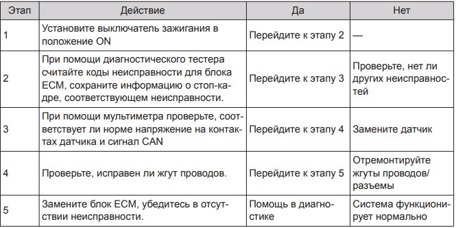 Описание кода неисправности: потеря сигнала датчика уровня топлива / отказ / ошибка проверки. Условия появления кода неисправности: данные об исправности цепи сигнала датчика уровня топлива в ходе самодиагностики.