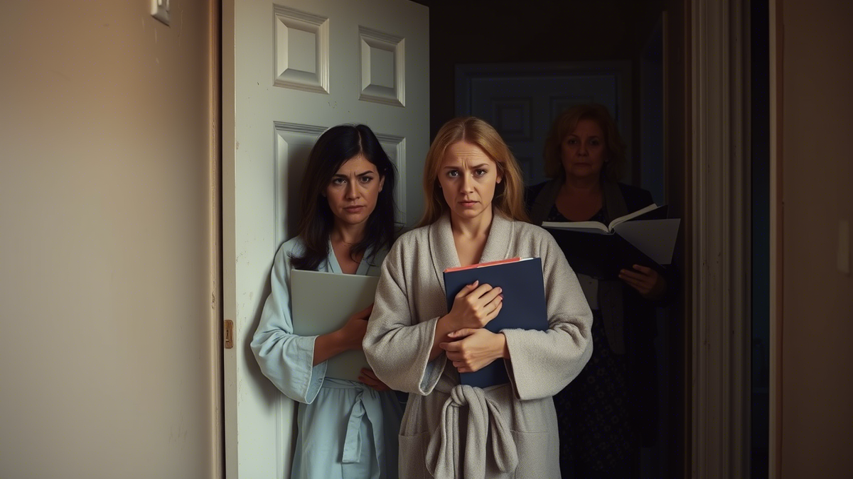 На пороге обнаружились две женщины с официальными папками — одна высокая, с тяжёлым взглядом из-под очков в строгой оправе, вторая — плотная, с поджатыми губами. А за ними, словно генерал за спинами солдат, возвышалась Тамара Николаевна — бывшая свекровь. Её тонкие губы изогнулись в улыбке, не предвещавшей ничего доброго.