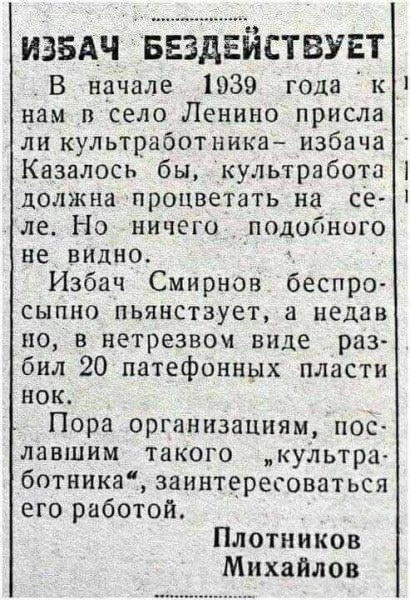 Удивительно, но в массовом сознании избач остался как вечно пьяный человек, не занимающийся своими обязанностями, избачи также часто упоминаются и в советской литературе, например, в произведениях Шолохова.