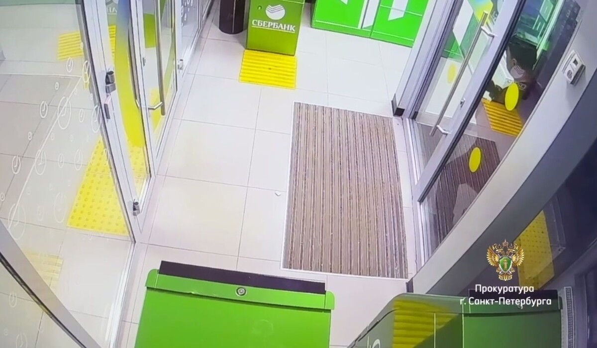 Видео: в Петербурге мужчина выломал дверь банка, чтобы снять деньги