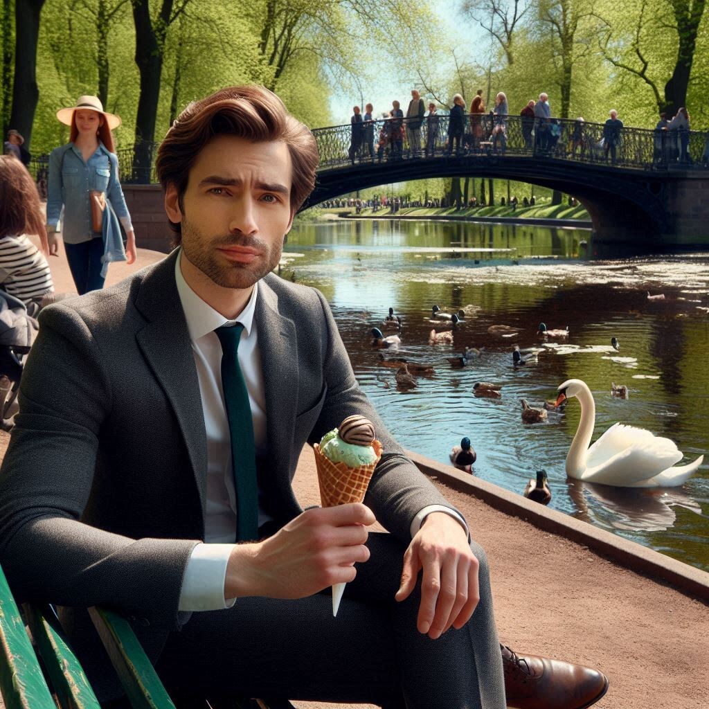 Андрей, словно в трансе, подошёл к ларьку с мороженым — такому же, как десятки других по всему городу, но сейчас показавшемуся ему островком беззаботного детства посреди взрослой жизни. Немолодая продавщица с добрыми глазами порекомендовала фисташковое — «самое вкусное, только сегодня привезли». Он выбрал два шарика в вафельном стаканчике — фисташковое и шоколадное, как делал в детстве, когда родители разрешали ему самому выбирать.
