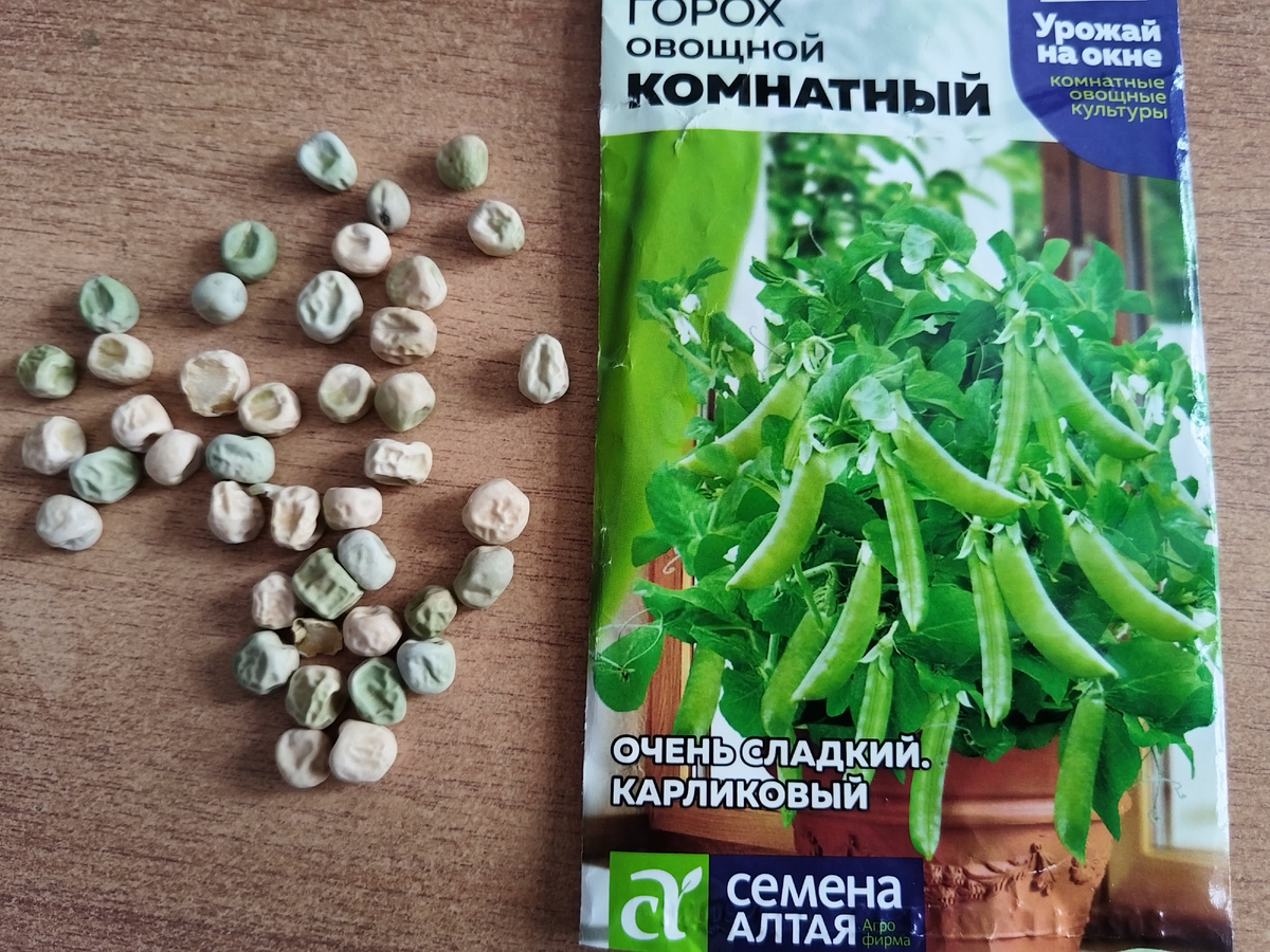 Вот, и решила от "хочу" перейти к "могу". Купила семена комнатного гороха и, не изучая рекомендаций по выращиванию, в этот же день посеяла часть семян.