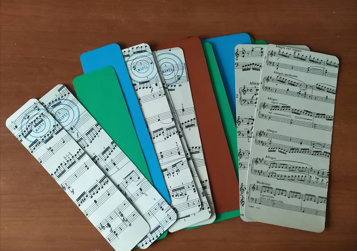 Сделала подложку из картона для детского творчества и нотной бумаги.