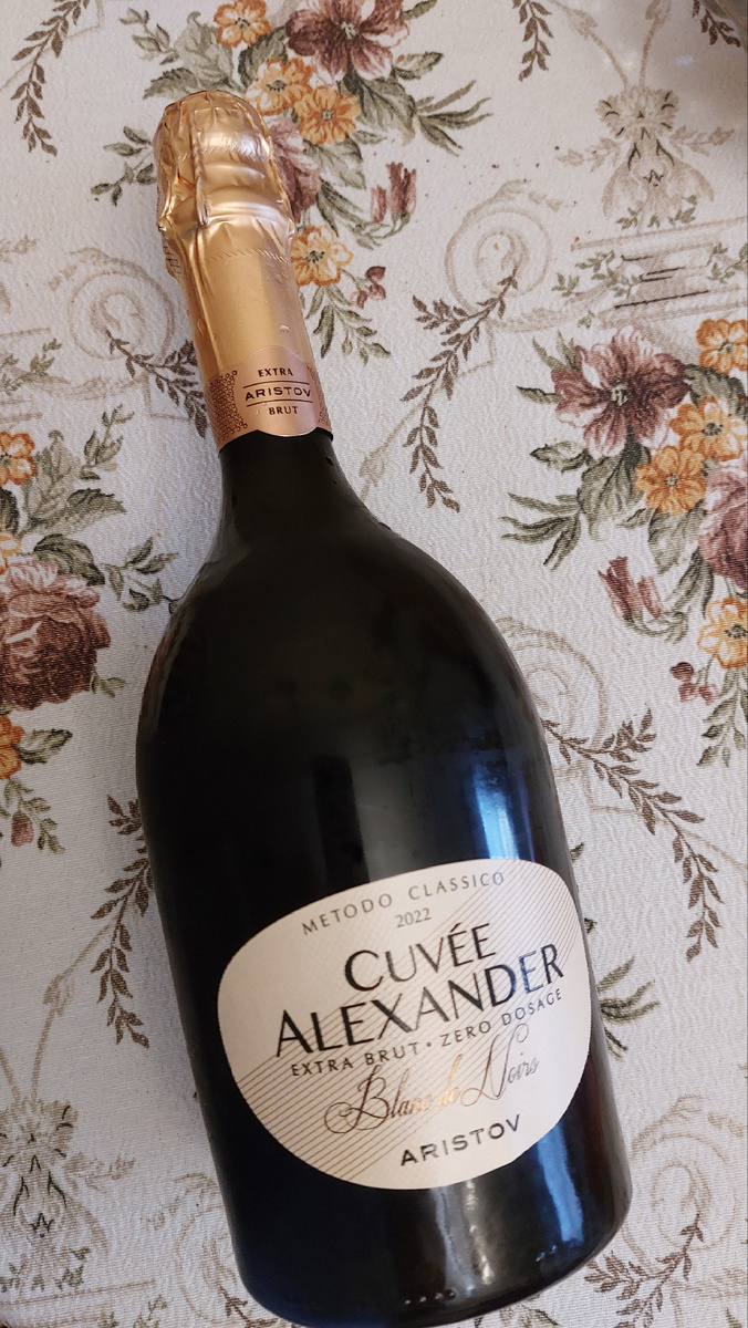 А если быть точным из черного. Из Пино Черного. И если раньше я рассказывал на канале про Cuvee Alexander blanc de blanc, то сегодня расскажу про Cuvee Alexander extra brut blanc de noir. Вино живёт в бутылке, знакомой любителям игристых Шато Тамань и Аристов: приземистая, пузатая, овальной формы с относительно тонким горлышком. Этикетка для Cuvee Alexander уже привычная и, что приятно, неизменная. Может её и можно посчитать несколько простецкой, зато она хорошо читается и узнается. Тоже самое можно сказать и про контрэтикетку. Как на большинстве продукции Кубань-Вино, на обороте бутылки Кюве есть qr-code для перехода на персональшную страницу вина на сайте. В свою очередь там - презентация с полными ТТХ вина. Супер-информативно. Фольга колпачка относительно плотная, но снимается просто. Пробка с частью из натуральной пробки, мюзле крепкое, плакетка фирменная. У вина прекрасный ровный перляж. К сожалению он несколько резко идёт в нос. Цвет великолепен: нежный персиковый. В аромате все