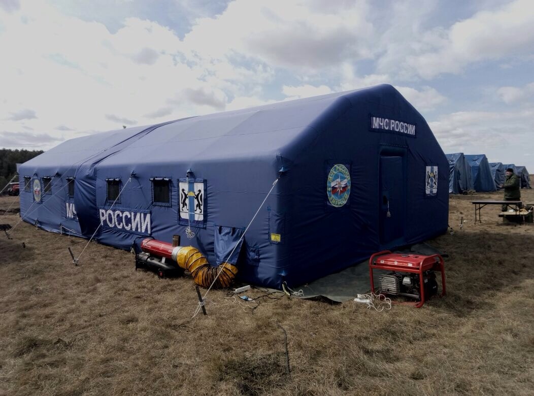 Двухсекционный пневмокаркасный модуль с возможностью использования каждой секции в автономном режиме. Отопление: печное или теплопушкой непрямого нагрева. Летом эксплуатация с использованием кондиционера. Съёмный тент позволяет производить замену на другие цвета в зависимости от оперативной обстановки. Все пневмокаркасные модули шириной 6 метров: https://pnevmosib.ru/module