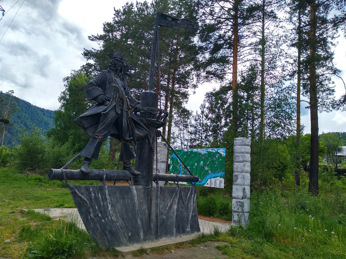 Указатель парка стоит прям возле дороги и вас встречает скульптура легендарного пирата Джека Воробья стоящего на флагштоке своего корабля