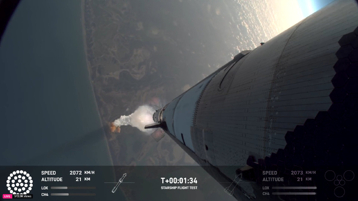 Во время набора высоты Starship S34 потерял устойчивость, после чего связь с ним была утрачена. SpaceX сообщила, что сразу после инцидента команда начала координацию с органами безопасности для реализации заранее подготовленных мер реагирования. Это указывает на то, что аномалия возникла внезапно, и система безопасности могла инициировать самоуничтожение, как это было в предыдущих неудачных запусках. Точное место и время разрушения пока не уточняются. Предположительно это район Багамских Островов. Так как обломки могли упасть за пределы запланированной зоны, это потребовало активации FAA зоны реагирования на обломки.