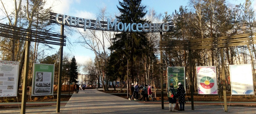 Очень понравилось, как отнеслись к старым и новым насаждениям, все деревья сохранены с большими приствольными кругами и очень много свежей посадки, это в основном кустарники или низкорослые деревья, которые подрастут, и можно будет убирать старые тополя. В сквере много современного освещения, скамеек, урн и даже туалет. Очень хочется, чтобы студенты и отдыхающие сберегали и улучшали этот красивый и информативный сквер на долгие годы. Летом сквер имени Александра Моисеенко еще больше расцветет в память о таком прекрасном человеке нашего города.