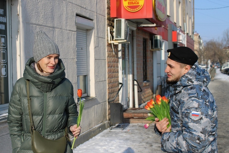 Так судебные приставы поздравили прекрасный пол с 8 Марта Многие проходившие пятничным утром по улице Коли Мяготина в Кургане женщины получили подарки –тюльпаны от судебных приставов к 8 Марта. Мужчины УФССП России по Курганской области присоединились к всероссийской акции «Вам, любимые!» и раздали сотню тюльпанов проходившим недалеко от Управления женщинам. Кроме того, накануне Международного женского дня сотрудники УФССП России по Курганской области навестили матерей, жен и дочерей сотрудников, которые приостановили свои служебные контракты и отправились на СВО. Подарки получила и семья Михаила Малинникова, героически погибшего при исполнении служебных обязанностей.