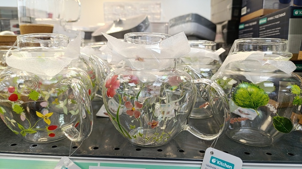 В Фикс прайсе можно найти множество стильных вещей, которые станут настоящим украшением дома. Они выглядят дорого, но при этом приятно радуют доступной ценой. Смотрите новый обзор новинок! Разные кружки с милыми рисунками, которые можно купить себе и на подарок, состав фарфор. Цена от 100 рублей. Пиалы, тарелки подойдут для праздничной и ежедневной сервировки стола, выполнены в лаконичном стиле с растительным узором, цена от 99 руб. Прозрачный заварочный чайник 680 мл, украшенный ярким растительным принтом, точно станет украшением стола, выдерживает температуру от -30 до +250 градусов, цена 449 руб. Есть чайники с радужным стеклом, цена 349 руб. Понравились ложки и вилки, которые украсят любую сервировку. Цена от 59 руб. Овощерезка с 2 сменными насадками 399 руб., отличный вариант для быстрого и легкого приготовления закусок. Просто положите продукты и надавите. Тряпки уже не те, с рисунками и вышивкой, с такими и убирать хочется, цена от 69 руб., меламиновые губки 87 руб., набор из 5