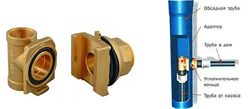 - Герметизация стыка: скважинный адаптер обеспечивает герметичное соединение между трубопроводом и обсадной трубой, предотвращая утечку воды.