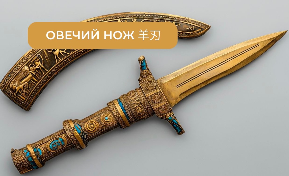В древнем Китае овечий нож был инструментом, которым забивали скот, в частности овец. Этот символ ассоциировался с резкими, жесткими действиями, а также с неизбежностью и решимостью.