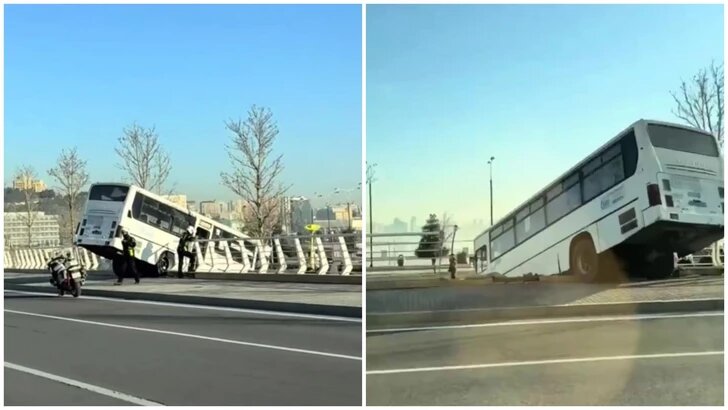 В Сабаильском районе города Баку произошло серьезное дорожно-транспортное происшествие (ДТП) с участием пассажирского автобуса. Соответствующие кадры распространились в соцсетях. Отмечается, что инцидент зафиксирован неподалеку от Площади Флага. По предварительным данным, водитель автобуса по невыясненным пока причинам потерял контроль над управлением транспортным средством, в результате чего автобус, пробив ограждение на обочине дороги, съехал на территорию Приморского бульвара. Информация о возможных пострадавших уточняется. #дтп #авария #пассажирскийавтобус #новостиазербайджана #mediaaz