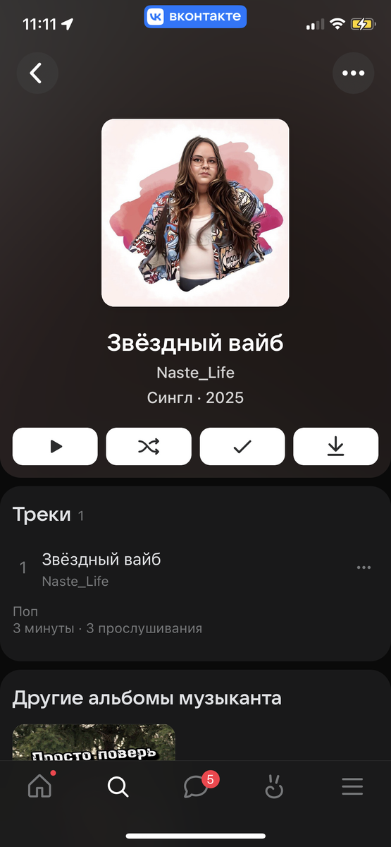 Сегодня вышла песня у Naste_Life под названием звёздный вайб слушайте на всех музыкальных