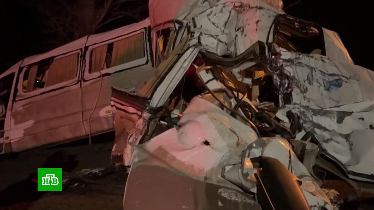 [ Смотреть видео на сайте НТВ ] Жертвами крупного ДТП в Белгородской области стали 6 человек. Пострадали четверо, один из них находится в тяжелом состоянии. Как сообщили в оперативных службах, вечером 6 марта в районе села Великомихайловка столкнулись автобус и микроавтобус, перевозивший 11 работников местного предприятия. Судя по видео с места аварии, служебный минивэн протаранил автобус сзади. Все жертвы − из микроавтобуса. Его в аварии смяло. На место тут же выехали сотрудники экстренных служб и прокуратуры, а также губернатор региона. Вячеслав Гладков, губернатор Белгородской области: «Разговаривал вчера с водителем микроавтобуса, который был за рулем, где ехали наши жители. Судя по его словам, причиной аварии является он, хотя я бы не делал такие выводы, потому что понимаю, в каком шоковом состоянии он находился. Вокруг лежали погибшие жители, и слова, конечно, требуют перепроверки. Я думаю, что следственные органы разберутся в причинах». Следственный комитет начал доследственную