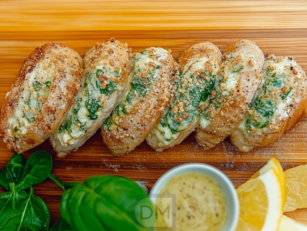 Рулетики из индейки с сыром и шпинатом — это изысканное и питательное блюдо, которое идеально подходит для тех, кто ценит здоровое и вкусное питание. Тонко нарезанная индейка становится основой для этих аппетитных рулетиков, которые наполнены свежим шпинатом и тягучим сыром. Каждый рулетик — это гармоничное сочетание нежных вкусов и текстур, что делает его по-настоящему незабываемым.
