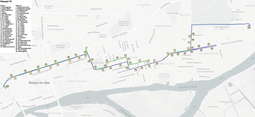 Ростов-на-Дону, 7 марта – Администрация Ростова-на-Дону объявляет о продлении маршрута автобуса №84 «ЖК Вересаево – Главный автовокзал» до поселка Александровка. Изменения вступят в силу с 8 марта 2025 года и станут ответом на запросы горожан, выраженные в ходе опросов на платформах «Активный ростовчанин» и «Госуслуги». Новый маршрут автобуса №84 будет следующим: пос. Александровка – ул. Берберовская – ул. Вересаева – пр. 40-летия Победы – ул. Сарьяна – ул. 35-я Линия – ул. Комсомольская – пл. Свободы – пл. К. Маркса – ул. 1-я Майская – ул. Верхненольная – ул. Советская – пр. Театральный – ул. Красноармейская – пл. Привокзальная – Главный автовокзал – пл. Привокзальная – ул. Красноармейская – пр. Театральный – ул. Советская – пл. К. Маркса – ул. 19-я Линия – ул. Мясникова – ул. Сарьяна – пр. 40-летия Победы – разворот в районе пр. 40-летия Победы, 202 – пр. 40-летия Победы – ул. Вересаева – ул. Берберовская – пос. Александровка. Администрация города подчеркивает, что данное решение явл
