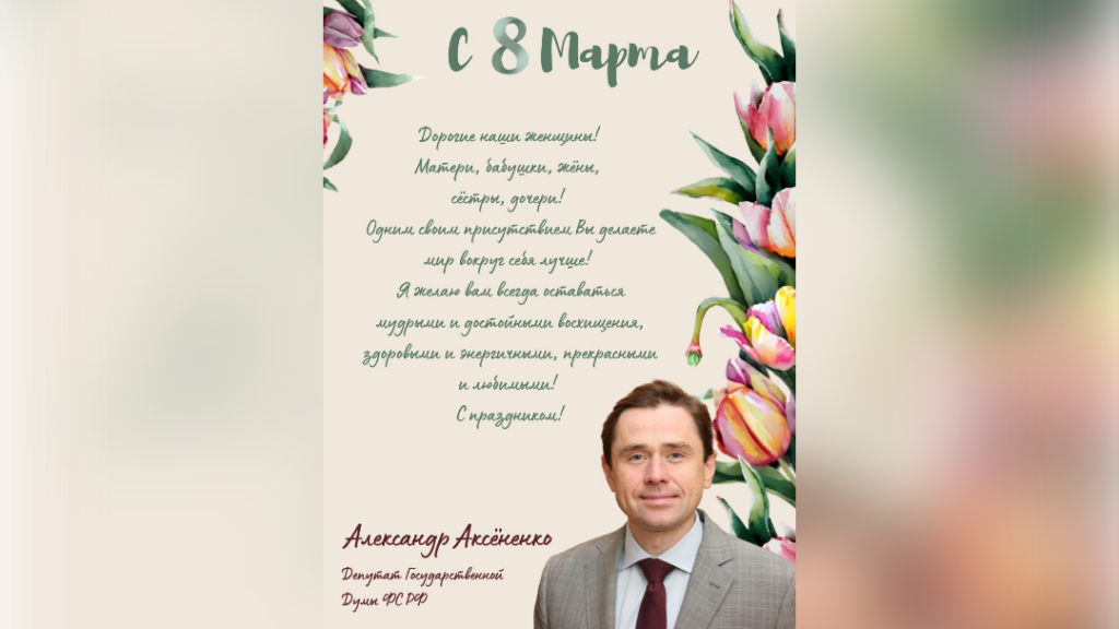 Депутат Госдумы Александр Аксененко поздравляет женщин с 8 Марта