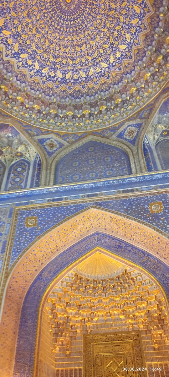 Вчера в статье задала вопрос о том какой формы потолок в медресе. Кто читал статью внимательно - молодцы))) Вот собственно тот самый потолок А это здание в котором этот потолок имеется Медресе Шердор (узб. Sherdor mаdrаsasi, прс. Мадрасаи Шердор; от перс. шер — лев, дор — имеющий — букв. Медресе со львами) — исламское образовательное, духовно-просветительское и мемориально-культовое сооружение XVII века в Самарканде на площади Регистан. Вместе с медресе Улугбека и Тилля-Кари образует целостный архитектурный ансамбль. В 2001 году вместе с другими достопримечательностями Самарканда внесено в Список Всемирного наследия ЮНЕСКО. Интрига затянулась? Да, потолок плоский в данном помещении, все остальное - обман зрения