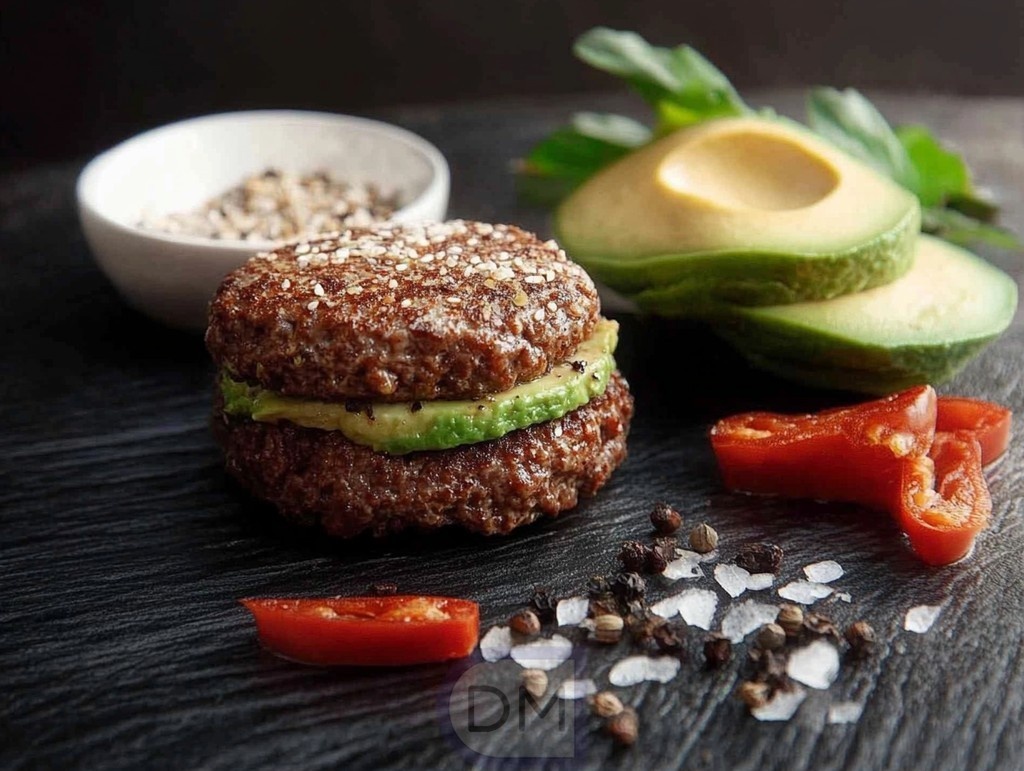 Кето-бургер без булки — идеальный выбор для тех, кто хочет насладиться всеми вкусами классического бургера, но без углеводов. Сочный и ароматный говяжий фарш, превращённый в идеально прожаренную котлету, становится сердцем блюда, наполняя его насыщенным мясным вкусом. Каждое его приготовление приносит особое удовольствие, ведь, несмотря на простоту, результат всегда превосходит ожидания. Сочные ломтики авокадо придают невероятную мягкость и свежесть. Тонкий, но яркий вкус авокадо гармонично переплетается с насыщенной котлетой, создавая незабываемое сочетание. Листья хрустящего салата, словно изысканная подушка, придают этому кето-обеду лёгкость и свежесть, не перегружая блюдо, а лишь усиливая его вкус. Не менее важный элемент — пикантная горчица, которая мягко подчёркивает всю полноту вкусов. Легкая острота специи идеально контрастирует с кремовой текстурой авокадо и мясным богатством котлеты, превращая каждую порцию в нечто особенное. Такой бургер, при всей своей простоте, поражает сб