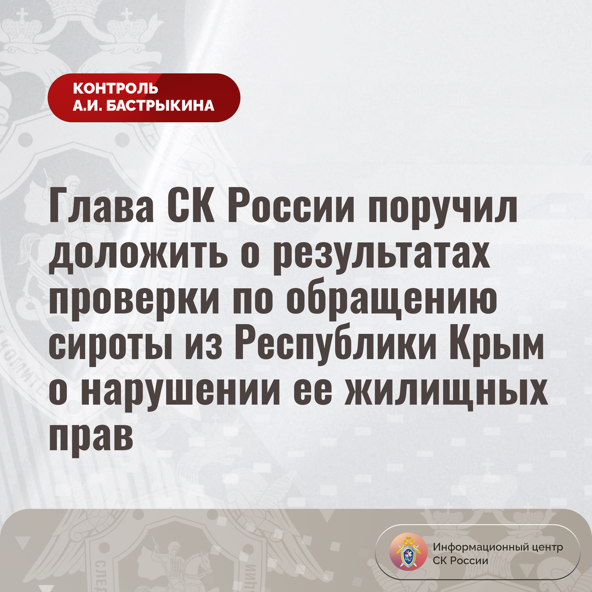 Глава СК России поручил доложить о результатах проверки по обращению сироты из Республики Крым о нарушении ее жилищных прав