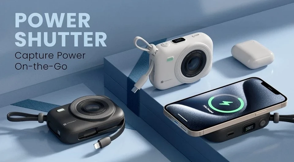 Бренд Portronics анонсировал новый портативный аккумулятор под названием Power Shutter. Он выполнен в оригинальном дизайне, напоминающем компактную цифровую камеру. Устройство оснащено магнитным креплением MagSafe и 2 встроенными кабелями для быстрой зарядки различных гаджетов. С ёмкостью 10 000 мАч, пауэрбанк поддерживает проводную зарядку через кабели USB Type-C (до 22,5 Вт) и Lightning, а также беспроводную зарядку мощностью до 15 Вт с использованием Qi-совместимой катушки. Устройство имеет компактный ЖК-дисплей для отображения оставшегося заряда и использует двухсторонний порт Type-C для подзарядки. Power Shutter рассчитан на 10 000 циклов зарядки и доступен в чёрной и белой расцветках. Устройство уже поступило в продажу, но пока только в Индии. Его цена — $16 (около 1 500 рублей).