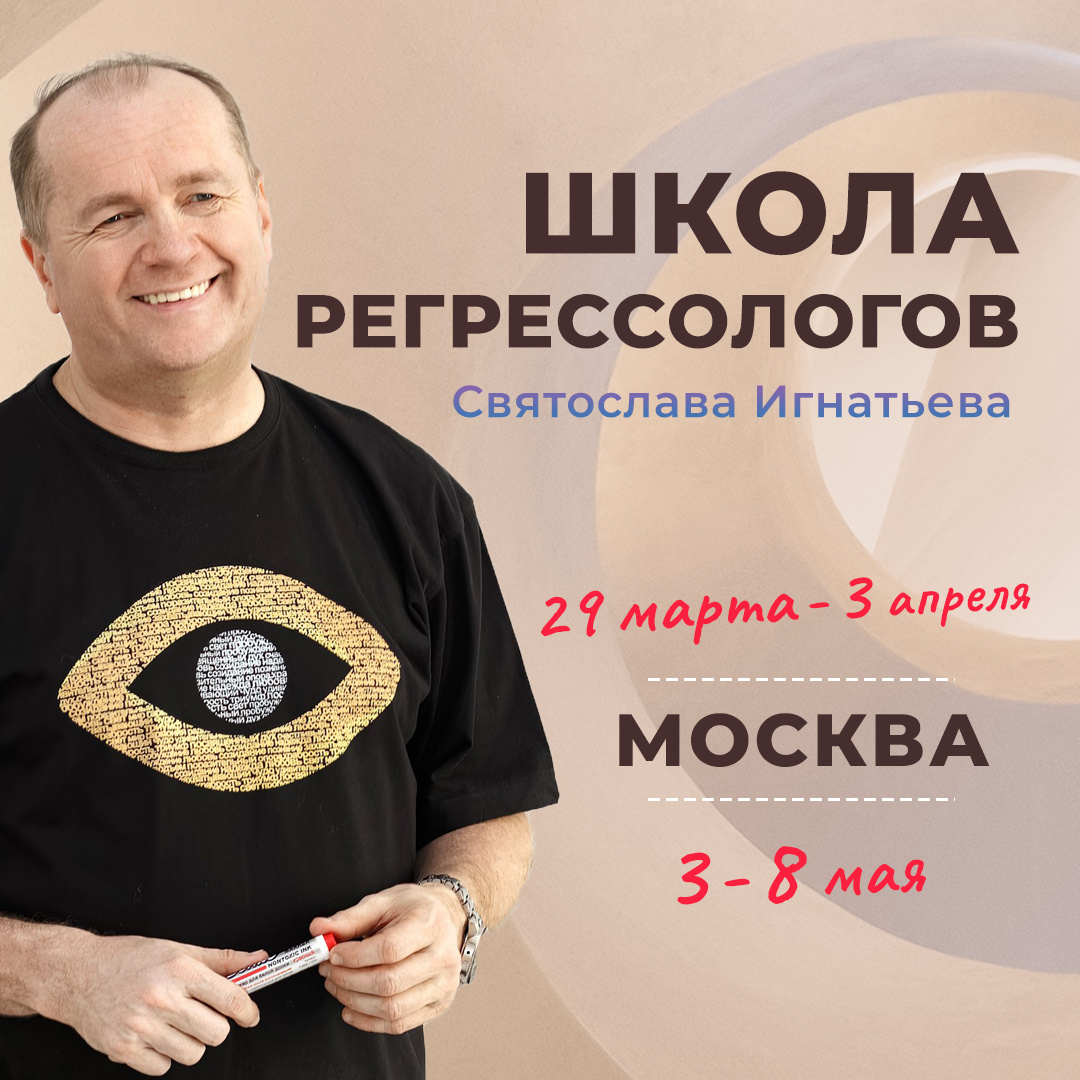 Приглашаем на курс-интенсив «Обретение целостности через связь времён»! Школа регрессологов Святослава Игнатьева приглашает вас на уникальный курс-интенсив, который поможет вам обрести целостность и гармонию с собой и окружающим миром. Что вы получите на курсе: * знания о регрессивной терапии и её применении для самопознания и саморазвития; * практические навыки работы с прошлыми жизнями и их влиянием на текущую жизнь; * инструменты для эффективного взаимодействия с Духовной группой и Высшим Я; * поддержку опытных наставников и единомышленников; * незабываемые впечатления и опыт, которые останутся с вами навсегда; * сертификат о прохождении курса; * доступ к дополнительным материалам и ресурсам после окончания курса. Количество мест ограничено. Используйте возможность стать частью этого уникального события! Запишитесь на курс прямо сейчас! Мы предлагаем комфортные условия обучения: уютные аудитории, методические материалы, а также перерывы на кофе-брейки. Автор курса - опытный регрессо