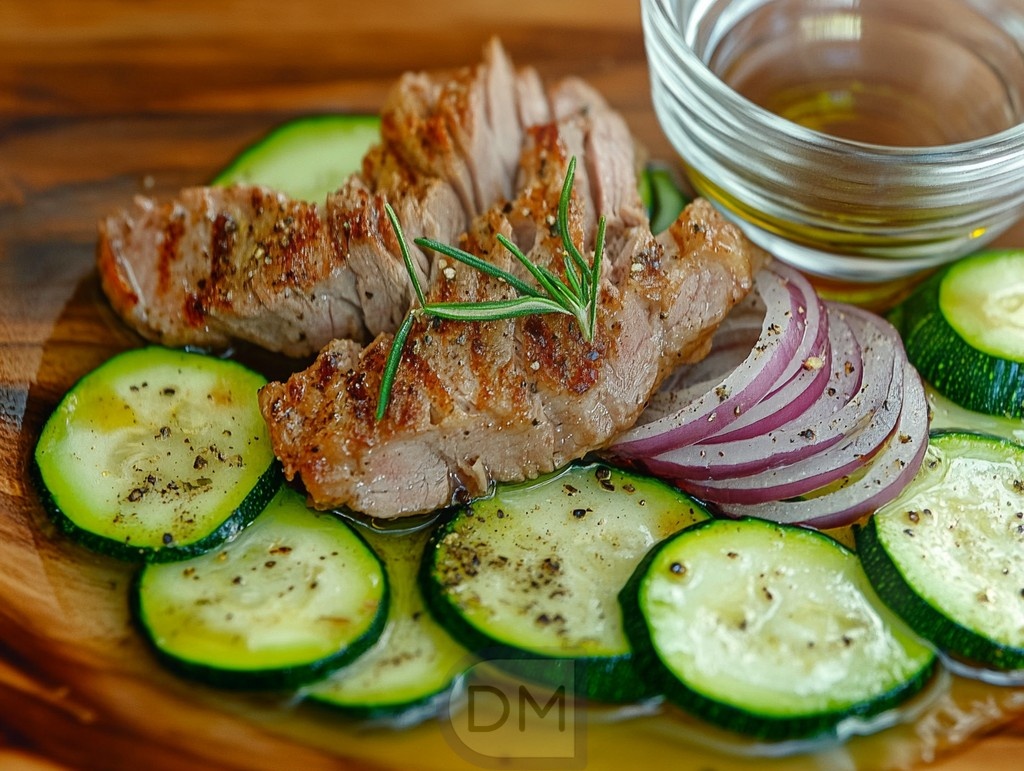 Запечённая утка с овощами подарит вам не только гастрономическое наслаждение, но и утончённое удовольствие от каждого укуса. Сочные кусочки утиного филе, обжаренные до золотистой корочки, раскрывают всю свою насыщенную текстуру и вкус. Мясо получается невероятно мягким, а его богатый аромат идеально сочетает с пряным тимьяном, создавая атмосферу уюта и удовольствия. Овощи, такие как свежий цукини, сладкий болгарский перец и нежный красный лук, наполняют блюдо яркими красками и свежими нотками. Запечённые до мягкости, они придают утке лёгкую сладость и балансируют её насыщенность. Каждый ломтик перца и цукини, обогатившийся ароматами оливкового масла и специй, делает каждый укус по-настоящему вкусным и освежающим. Когда это блюдо подаётся горячим, оно заполняет пространство своим аппетитным запахом, заставляя гостей собраться за столом. В этом кето-ужине каждый элемент идеально сочетается, создавая гармоничное сочетание текстур и вкусов. Запечённая утка с овощами — это не просто обед, а
