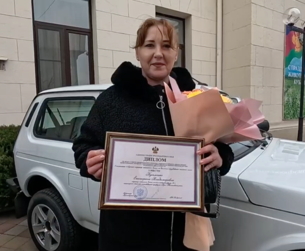 В краевом конкурсе профессионального мастерства среди животноводов по итогам работы в 2024 году в номинации «Лучший оператор машинного доения» победителем стала Екатерина Кузьменко, оператор машинного доения МТФ № 4 агрофирмы «Русь». Она надоила от каждой коровы по 15,7 тысячи килограммов молока. За ее достижения на краевом торжестве, где чествовали лучших животноводов, из рук губернатора Кубани Вениамина Кондратьева Екатерина Владимировна получила диплом победителя и ключи от новенького автомобиля «Нива». Кстати, а знали ли вы, что за последнюю пятилетку тимашевские труженицы сельского хозяйства и перерабатывающей промышленности за свою отличную работу получили 59 наград — от Министерства сельского хозяйства России, губернатора Краснодарского края Вениамина Кондратьева, краевого министерства сельского хозяйства. Это благодарности, почетные грамоты, дипломы и автомобили. Да-да, Екатерина Кузьменко стала в нашем районе третьей обладательницей нового авто. За рекордные надои губернатор К