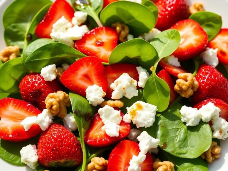 Этот освежающий летний салат сочетает в себе сладость клубники, соленость сыра фета и нежность шпината, создавая идеальное блюдо для жаркого дня.
