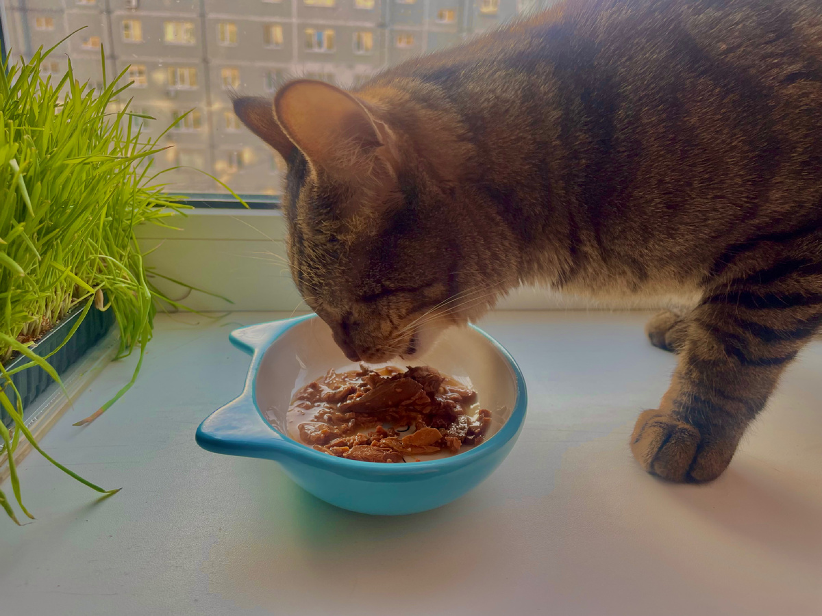 Кот слизывает только желе и соус, оставляя кусочки из влажного корма: привереда Шпрот