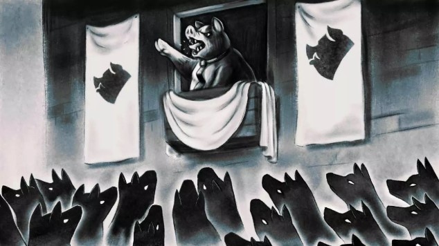 / Все животные равны. Но некоторые животные более равны, чем другие./ / Они переводили глаза со свиньи на человека, с человека на свинью и снова со свиньи на человека, но угадать, кто из них кто, было невозможно./ Знаменитая повесть-притча английского классика XXI века. Была запрещена в Советском союзе. В принципе, исходя из последнего предложения, можно сделать презумпцию, о чем собственно пойдет речь. И да, верно, это анализ имевшихся на тот промежуток времени событий, а также некое предсказание о том, что должно было произойти после 1945 года. По сюжету у нас есть ферма, где живут-работают люди и животные. Однако последние, чудесным образом наделенные мышлением, приходят к выводу, что их угнетают. И правда, со скотом homo sapiens никаким образом не считался. Заботился, если можно так это назвать, лишь до той поры, пока животные выполняли свою функцию. А далее – живодерня. Следовательно, отсюда бунт, восстание, маленькая революция под предводительством великого оратора. Скот добился