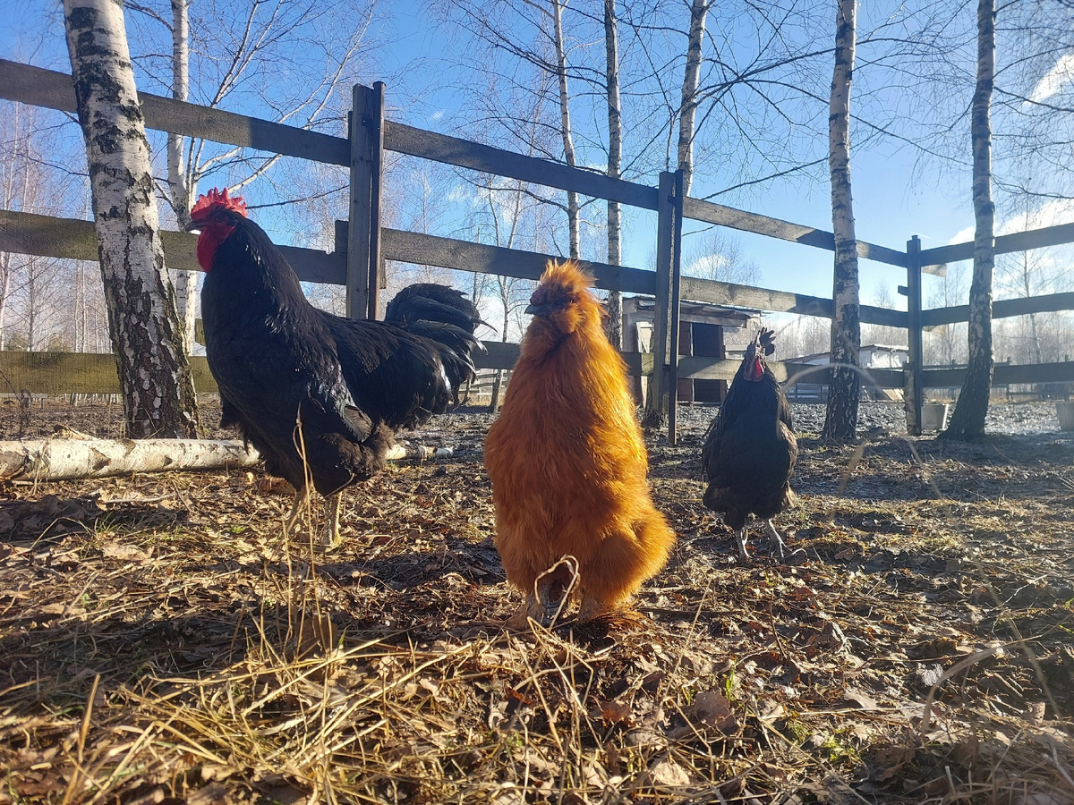 Сегодня петухи впервые после своего осенне-зимнего «заточения» вышли погулять на территорию Святополя, а не только на своем «приусадебном» участке. И что тут началось!.. Бублик лаял не переставая пару часов. Марс параллельно с этим разбирал вольер, желая первым добраться до забавных птичек. А если петухи еще начинали куда-то перемещаться или не дай бог драться (видимо, оказавшись на свободе, они захотели показать друг другу свою силушку молодецкую и косточки размять), собаки и вовсе сходили с ума. Тогда к Бублику и Марсу присоединялись и другие якуты, которые затягивали в свое эмоциональное безумие уже всю стаю. Вольер дружно начинал выть, из-за создавшейся и не совсем понятной для Кроши суматохи (она приехала щенком тогда, когда в Святополе уже жили петухи, поэтому у нее эти птицы не вызывают чрезмерной реакции) молодая хаски начинала носиться по вольеру. Это в свою очередь приводило к тому, что за ней начинал охотиться Рав, который «гостил» в это время у стаи. И так раз за разом начи