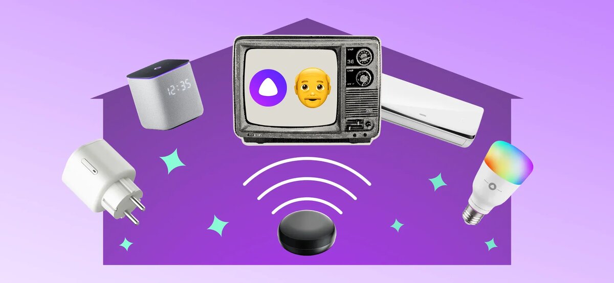 Собрать умный дом сегодня можно даже из возрастной техники. Например, устаревший телевизор будет управляться голосом через колонку Яндекс Станции, а кондиционер — включаться, выключаться и менять температуру удаленно со смартфона.