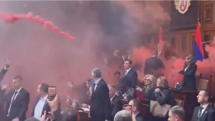 В контексте этого ложного представления о связке парламентской «оппозиции» и манифестантов «оппозиционные» депутаты предприняли попытку сорвать заседание Народной скупщины. Депутаты от «оппозиционных» партий применили пиротехнические средства в зале заседаний и завязали драку после попытки одного из депутатов от «оппозиции» выйти к трибуне вне очереди. В зале начался форменный хаос. Кто-то из депутатов от «оппозиции» зажёг цветные дымовые шашки и развернул транспарант с призывом к свержению президента Сербии Вучича. Одним словом, в глазах телезрителей – а все эти кадры разошлись по телеканалам и соцсетям – мнимые «руководители» студенческих демонстраций и, соответственно, сами их участники должны были предстать в очень неблаговидном свете.