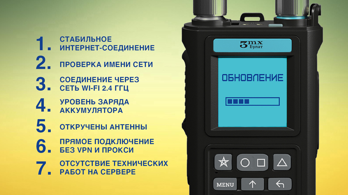 Детекторы дронов «Булат 4» от MADRO – это современные устройства для обнаружения беспилотников, оснащенные возможностью обновления программного обеспечения. Обновления не только расширяют функциональные возможности детектора, но и позволяют своевременно добавлять новые сигнатуры дронов, исправлять обнаруженные ошибки и повышать стабильность работы устройства. Тем не менее, в процессе загрузки и установки новой прошивки у некоторых пользователей могут возникать ошибки. В этом материале мы подробно разберем, как правильно обновить ПО «Булат 4», какие факторы могут препятствовать успешному обновлению, и что делать, если процесс прерывается. Чтобы обновление ПО прошло без сбоев, необходимо выполнить несколько обязательных условий. Перед началом загрузки обновления убедитесь, что ваше устройство подключено к стабильному интернету. Лучше всего использовать Wi-Fi-сеть с хорошим сигналом, так как медленный или нестабильный интернет может привести к прерыванию процесса и ошибкам при установке.