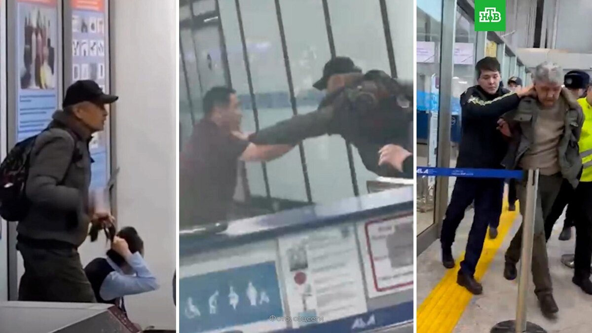 [ Смотреть видео на сайте НТВ ] Мужчина с ножом взял в заложницы сотрудницу аэропорта Алматы, потому что его не пустили в зону досмотра. СМИ пишут, что мужчина вышел из себя, потому что его не пустили без документов в зону предполетного досмотра. Он достал нож и схватил девушку за волосы. На помощь сотруднице воздушной гавани пришел один из оказавшихся поблизости мужчин: он вызвался стать заложником вместо нее. Вооруженный дебошир согласился. Когда захватчик отвлекся, мужчина выхватил у него из рук нож. Скрутить неадеквата помогли очевидцы и полицейские. [ Смотреть видео на сайте НТВ ]