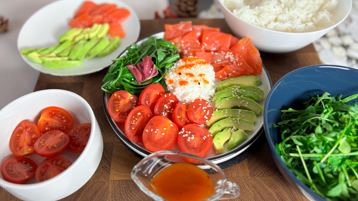 Боул — это, пожалуй, самое вкусное и полезное блюдо. Оно получило свое название от посуды, в которой подается, в переводе с английского языка это миска. Боул интересен тем, что его легко можно собрать с учетом сезонности, а также того, что есть в вашем холодильнике. Его основа это крупа, овощи, мясо или рыба и соус. Вы можете экспериментировать с ингредиентами, чтобы создать самый вкусный и питательный вариант с учетом предпочтений. Сегодня я вам представлю свой вариант. Ингредиенты: Приготовление: Рис отвариваем так, как указано на упаковке. Красную рыбу нарезаем ломтиками или кубиками. Помидоры черри промываем, нарезаем половинками. Салат промываем, рвем на небольшие кусочки или режем. Если авокадо мягкий, нужно сделать небольшой надрез сверху или снизу, отогнуть кожицу и потянуть за нее, это будет самый легкий способ его почистить. Нарезаем его тонкими ломтиками. Далее кладем в середину тарелки рис. Вокруг него выкладываем все остальные ингредиенты. Сверху поливаем соусом и посыпае