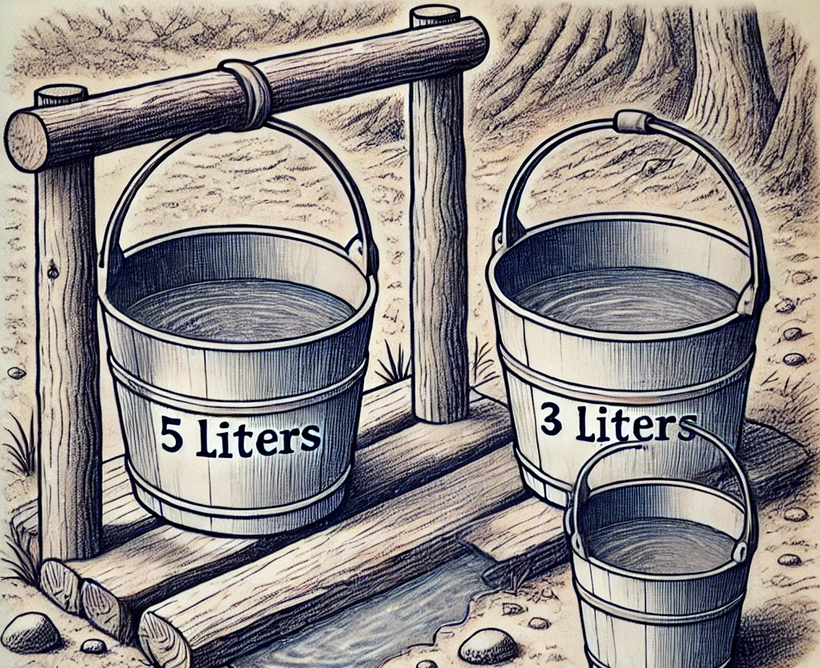 Формулировка загадки: У тебя есть два пустых ведра: Тебе нужно точно отмерить 4 литра воды, но у тебя нет мерных приборов, только эти два ведра и неограниченный источник воды. Как ты можешь это сделать? 🤔💧 ↓ Решение внизу ↓ ↓ ↓ ↓ ↓ ↓ ↓ ↓ ↓ ↓ ↓ ↓ ↓ ↓ ↓ ↓ Поначалу кажется, что задача невозможна, ведь у нас нет ведра с точной отметкой на 4 литра. Однако если использовать переливание воды между ведрами, можно получить нужный объем. Ключевой момент – это использование метода переливания и вычитания. Этот подход основан на арифметических операциях с ограниченными ёмкостями. 1️⃣ Наполнить 3-литровое ведро до краёв.